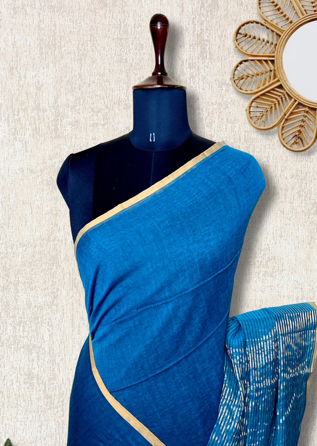 Handwoven Cotton Saree - Charcoal Black + Gold