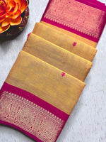 Care Instructions : Hand Wash - Do first two wash with plain water (dip and dry) next washes do with mild shampoo. These sarees are made up of pure and fine threads please avoid using machine wash
