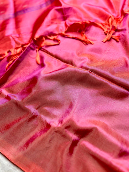 Meticulously crafted by skilled artisans in Tamil Nadu, this saree showcases their unrivaled mastery and unwavering commitment. Its feather-light composition makes it a perfect companion for joyous celebrations, effortlessly embodying your innate grace and impeccable style. Let this saree become a true reflection of your distinctive elegance and irresistible charm.