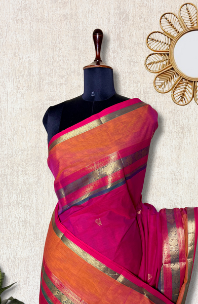 kanchi cotton sarees are the woven signature pieces crafted by the weavers of Chettinad Region, Tamil Nadu.