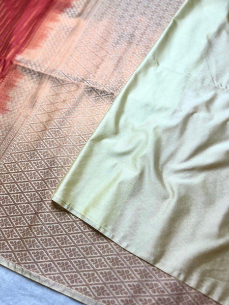 Drape yourself in elegance with this exquisite Kanchi Soft Silk Saree in a stunning thunderbird red color, featuring delicate stripe patterns all over the body with a contrast border.. The graceful contrast zari pallu adds a touch of grandeur, perfectly paired with a contrastng harvest sandal color blouse. A timeless piece that blends tradition with sophistication, perfect for festive and special occasions.